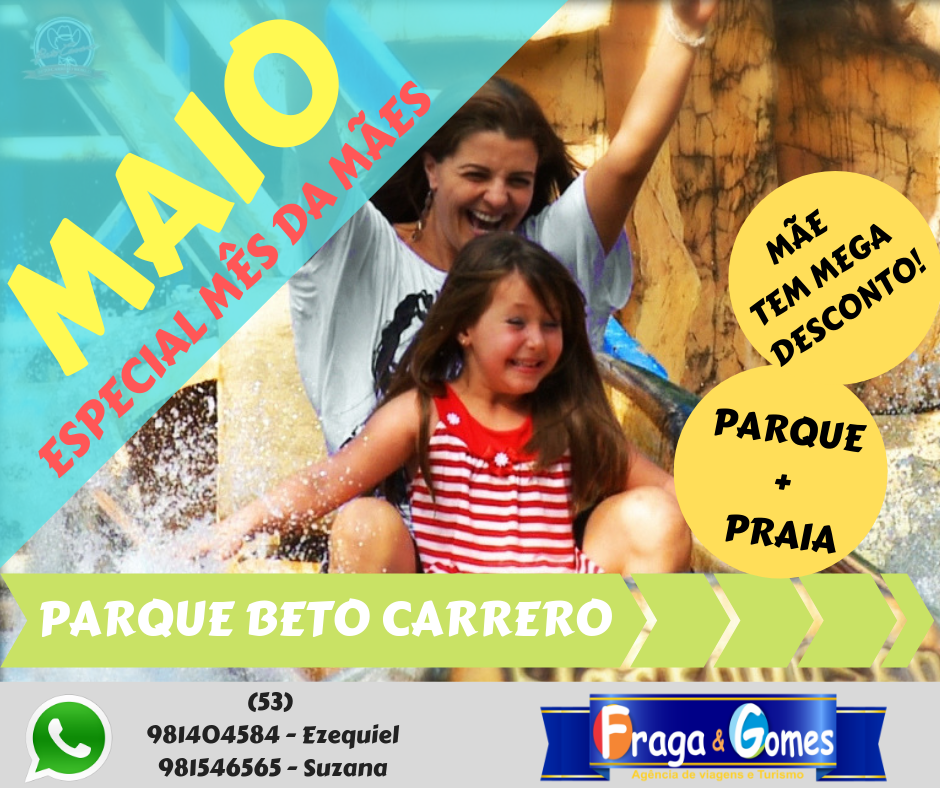 Pacote com 1 dia de parque + 1 dia de praia ou 2 dias de parque